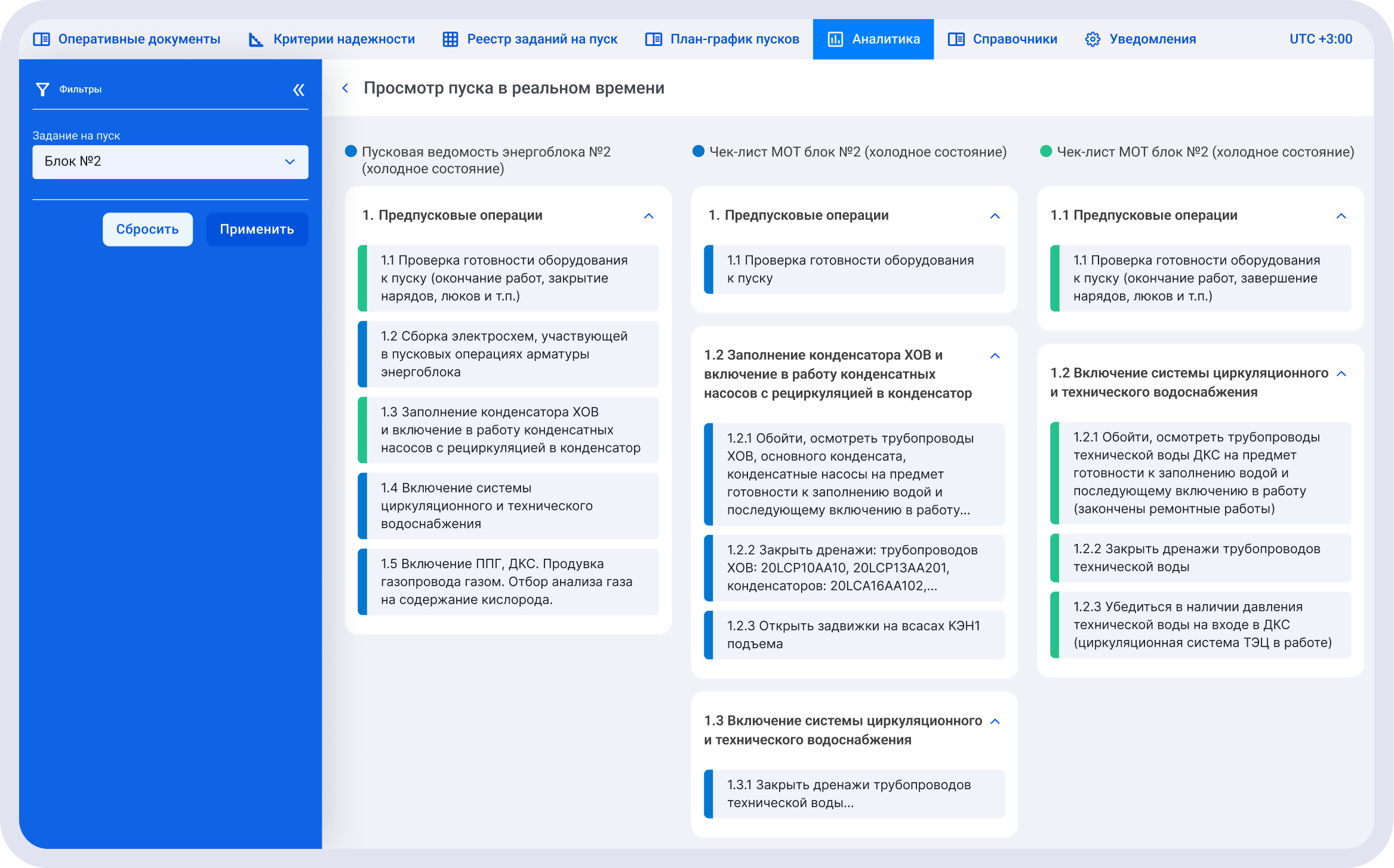 Систематизирует действия оперативного персонала во время предпусковых и пусковых операций — электронное документирование