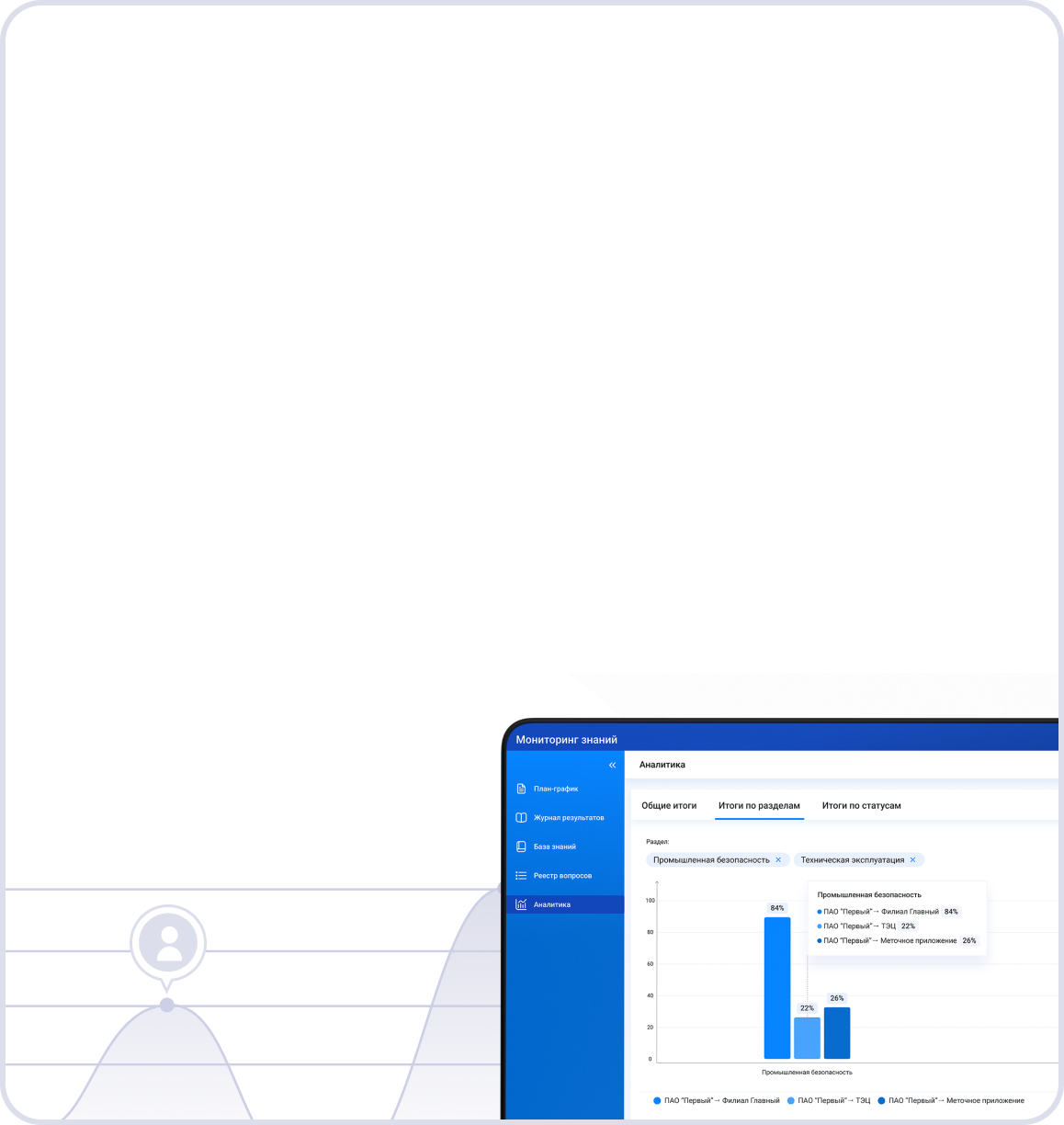 После тестирования в системе отображается прогресс или регресс уровня знаний